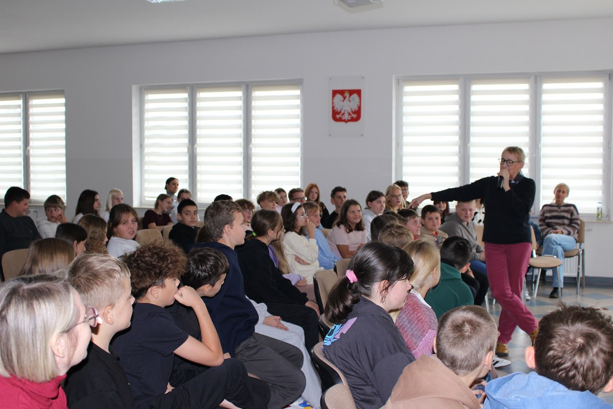 Ważnym wydarzeniem w październiku - Miesiącu Bibliotek Szkolnych, jest w naszej szkole spotkanie z pisarzem. Tym razem do Publicznej Szkoły Podstawowej w Goszczynie zawitała autorka “Dynastii Miziołków”, Dziecięcego Bestsellera Roku (1996), książki będącej klasyką literatury dziecięcej, a także szkolną lekturą.