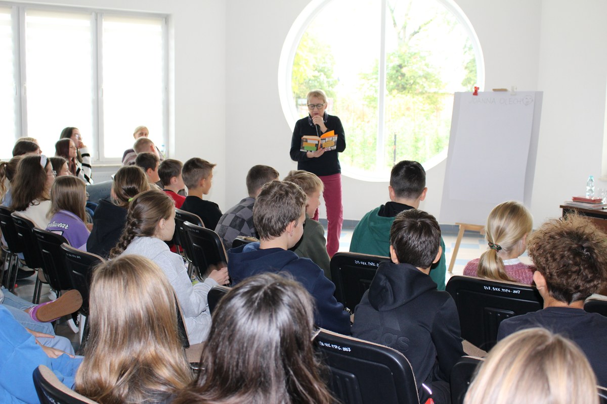 Joanna Olech opowiedziała uczniom o okolicznościach powstania tego utworu, ale także zaprezentowała inne swoje dzieła, w tym najnowszą książkę “Ziomek”. Zachęciła również młodzież do wymyślania zabawnych historyjek o trzech smokach, co pozwoliło młodym ludziom poznać, czym jest wysiłek twórczy, uzmysłowiło, co to znaczy być pisarzem i kto może nim zostać.