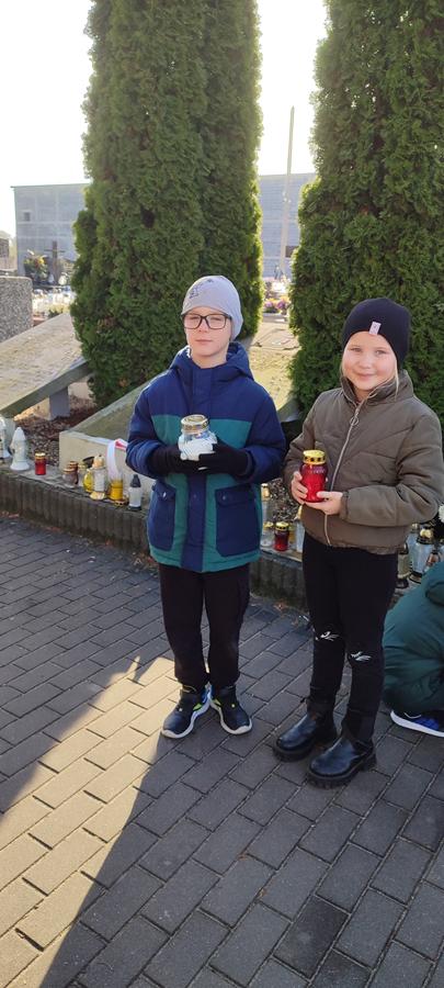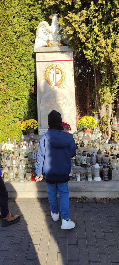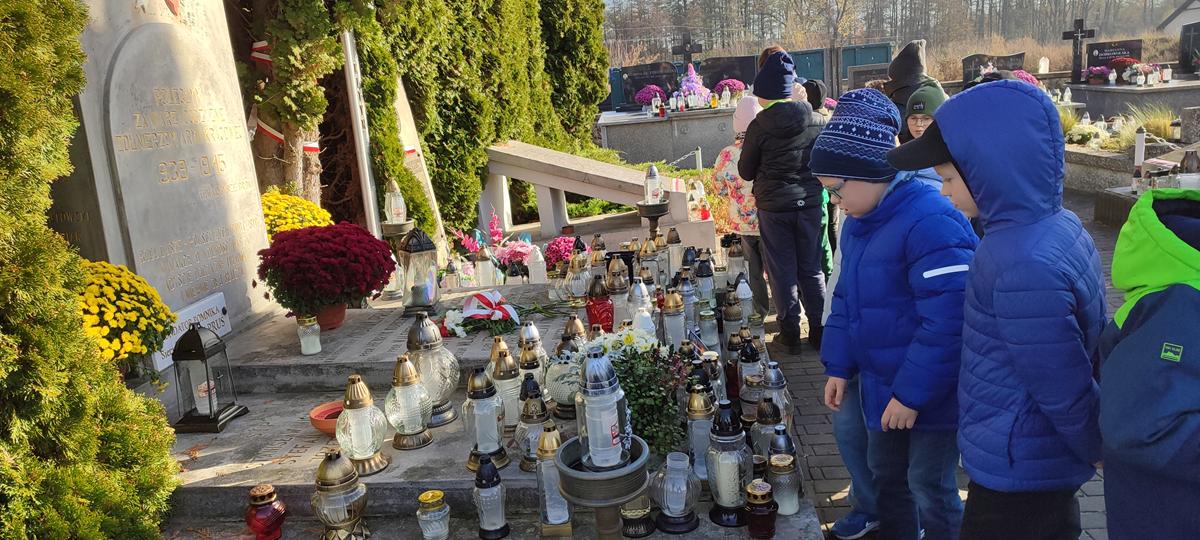Pod opieką nauczycieli uczniowie udali się na pobliski cmentarz, aby zapalić znicze na grobach żołnierzy poległych w obronie Ojczyzny. Spacer wśród cmentarnych alejek stał się dla dzieci okazją do refleksji nad znaczeniem słów „pamięć” i „wdzięczność”.