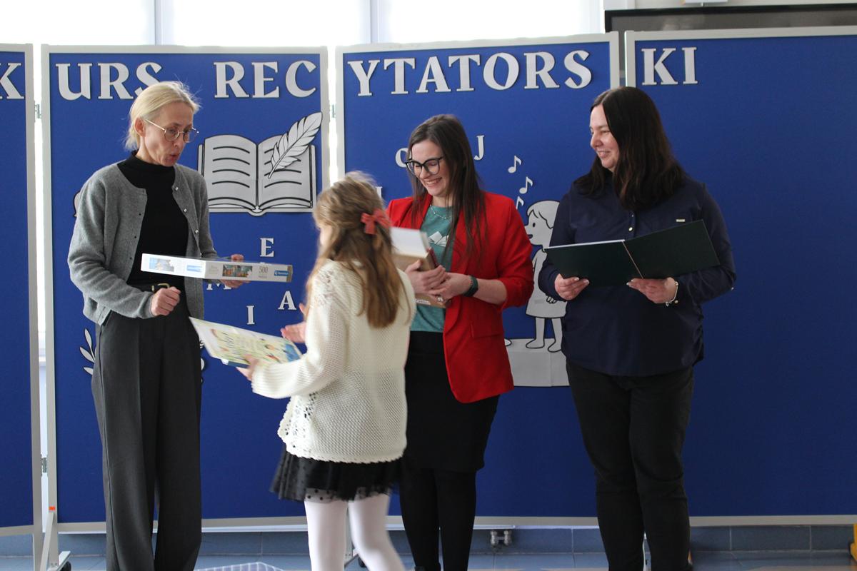 Prezentacje wybranych tekstów poetyckich podzielono na dwie kategorie wiekowe. W pierwszej grupie wystąpiły dzieci z klas 1-4, zaś w drugiej młodzież z klas 5-8. Zwycięzcą w kategorii klas 1-4 została Nina Pucek z kl. 4b, II miejsce zdobyła Melania Gontarek z kl.2b, a III otrzymała Maja Furmaniak z kl. 2a. Przyznano również wyróżnienie dla Marcela Dupczyka z kl. 3a.