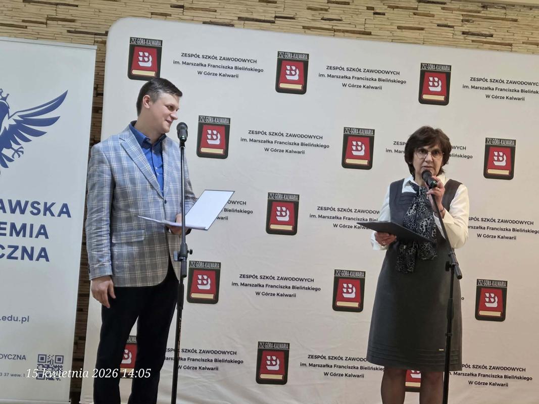 15 kwietnia 2026 roku uczniowie naszej szkoły wzięli udział w uroczystej gali wręczenia nagród Międzypowiatowego Konkursu Fizycznego pt. „Cień tworzy historię”. Wydarzenie odbyło się w Zespole Szkół Zawodowych im. Marszałka Franciszka Bielińskiego, gromadząc laureatów z wielu szkół regionu.